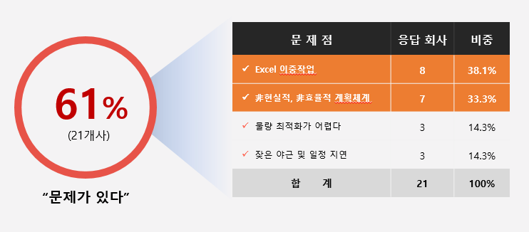 이 과정에서 Planning system을 사용하게 되지만, 실상 기업의 현실은 시스템을 사용하지 않고, 엑셀로 매번 수기로 작성하거나 수정 및 추가 작업이 있을 경우 같은 작업을 수도 없이 반복합니다.