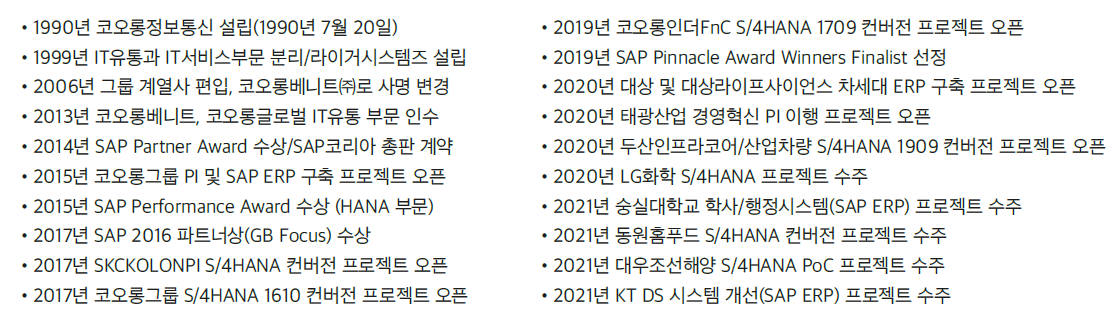명실상부 국내 최고의 S/4HANA 구축/컨설팅 업체라고 할 수 있습니다.