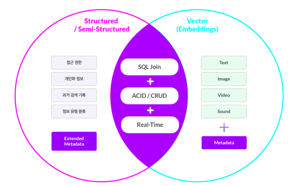 AI 기반 애플리케이션, Chatbot, Image 인식 등에 완벽하고 최적의 벡터 데이터베이스 기능을 제공합니다. 벡터 데이터를 다른 유형의 데이터와 함께 함께 관계형 테이블에 저장해서 확장된 메타데이터 및 벡터 데이터의 기타 특성을 SQL의 모든 기능으로 쉽게 쿼리할 수 있는 것이죠.