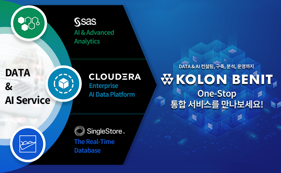 코오롱베니트는 대규모 데이터를 빠르게 처리하는 클라우드 네이티브 데이터베이스 플랫폼 사업도 확대한다. 코오롱베니트는 작년 '싱글스토어DB(SinglestoreDB)' 국내 독점 총판인 에이플랫폼과 '생성형AI를 위한 데이터 인프라 및 디지털전환(DX) 플랫폼 보급 확대'를 위한 파트너십을 체결했다. 싱글스토어DB는 제조 기업 애플리케이션 데이터베이스를 실시간 처리 및 분석하는데 활용되어 디지털 혁신을 가속화할 것으로 기대된다.