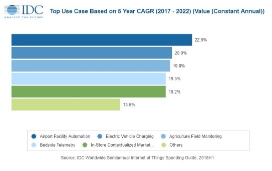 IDC에 따르면 사물 인터넷 시장규모를 2019년 약 800조원에 이를 것으로 전망했습니다. 이는 2018년 지출액 약 700조원대보다 약 15% 증가한 수치입니다.