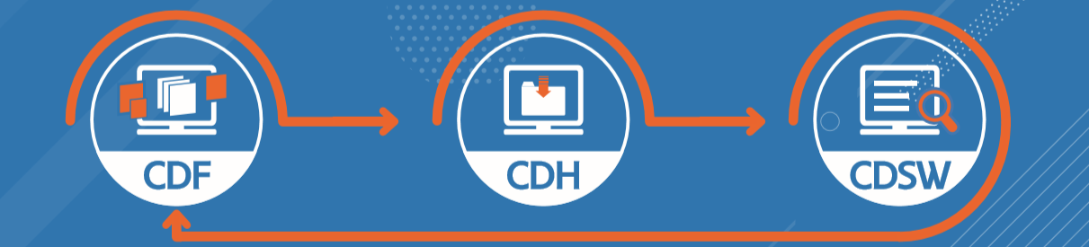 CDF(Cloudera DataFlow) > CDH(Cloudera Distribution for Hadoop) > CDSW(Cloudera Data Science Workbench)