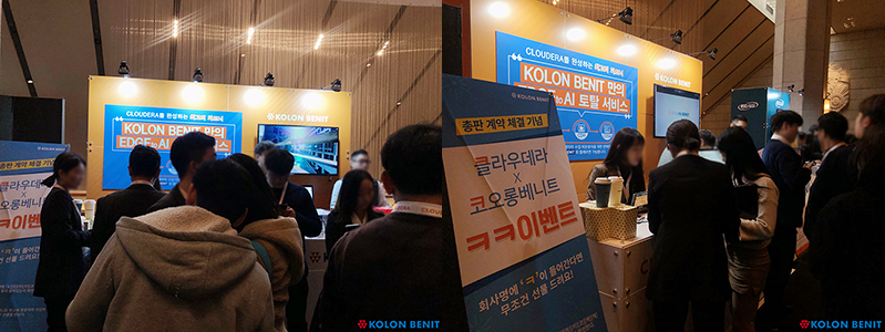빅데이터 통합 서비스를 제공하는 코오롱베니트의 부스에 많은 분들이 방문해주셨습니다. EDGE부터 AI까지 데이터 전 영역을 커버할 수 있도록 토탈 서비스를 제공하는 코오롱베니트는 각 기업의 환경에 맞춰 최적의 솔루션을 제공합니다.