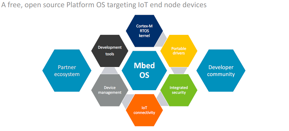 하지만, Mbed OS는 이런 어려운 부분들을 실리콘 Vendor와 Component Vendore들과 함께 Ecosystem를 통해 유기적으로 Mbed OS 만들어 놓았으며, 무료로 사용 가능합니다.