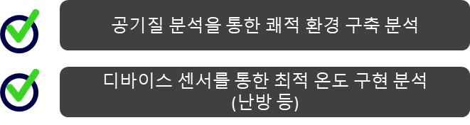 또한 개발된 알고리즘을 기반으로 홈 IoT 뿐만 아니라 날씨나 미세먼지 관리 기능이 접목된 타 공간 서비스 및 헬스 케어 등과 연계하여 다양한 방식의 서비스 지원이 가능합니다.